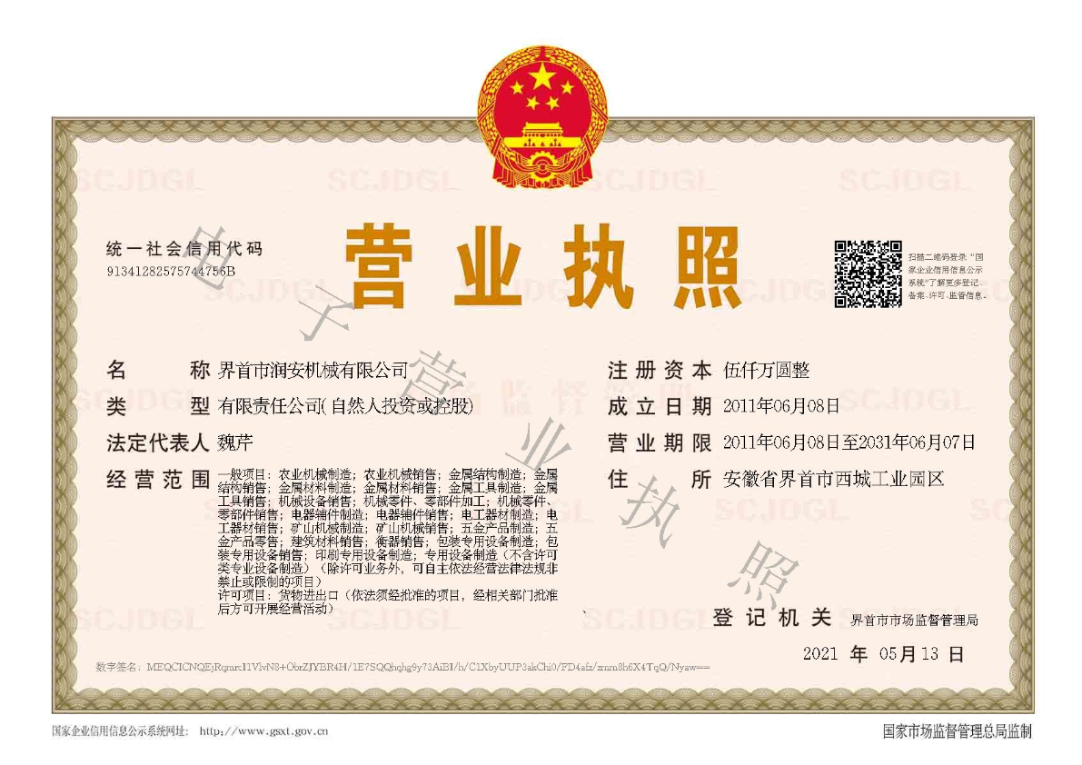 - 界首市潤(rùn)安機(jī)械有限公司成立于2011年6月,位于安徽省界首市西城工業(yè)區(qū),公司占地100余畝,注冊(cè)資金5000萬(wàn)人民幣,職工200余人。經(jīng)營(yíng)糧食倉(cāng)儲(chǔ)機(jī)械設(shè)備組裝、生產(chǎn)、銷(xiāo)售等,總投入資金3600萬(wàn)人民幣,現(xiàn)有標(biāo)準(zhǔn)化鋼構(gòu)生產(chǎn)車(chē)間12000多平方...