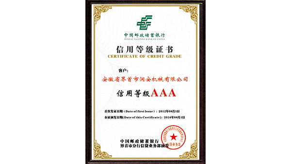 • 信用等級(jí)證書