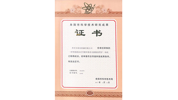 • 科技成果證書